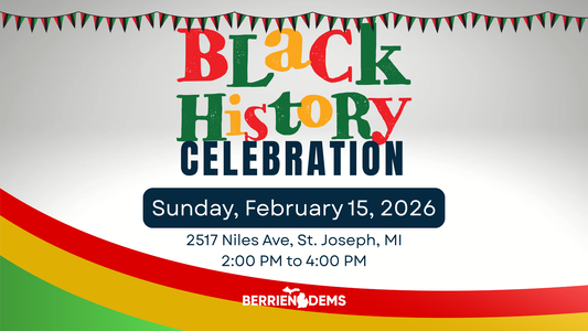 The Berrien County Democratic Party invites you to our Black History Celebration that honors the history, culture, and contributions of Black Americans. We invite everyone to come, bring your family and friends and join in a fun, hands-on event that celebrates how that legacy continues to shape the work for justice today —because Black History is American History.