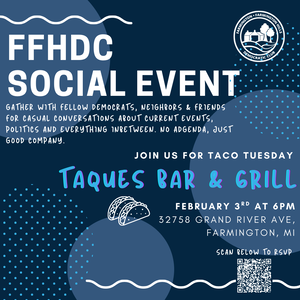 Meet up with us for Taco Tuesday at Taques Bar & Grill in downtown Farmington. This is a casual, social gathering aimed at bringing people together. Food/Drink available for purchase. Please RSVP so we can make reservations.