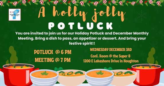 Join us for our Holiday Potluck Party and December monthly meeting at 6 PM Wednesday December 3rd, at the Super 8 in Houghton.