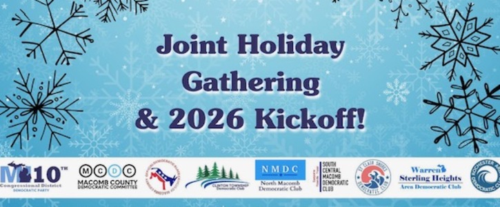 Join the Michigan 10th Congressional District Democratic Party for a joint end-of-year celebration and 2026 election kickoff! We’re teaming up with the Macomb County Democratic Committee, Official Democratic Black Caucus of Macomb, Clinton Township Democratic Club, North Macomb Democratic Club, South Central Macomb Democratic Club, St. Clair Shores Democrats, Warren - Sterling Heights Area Democratic Club, and the Rochester Area Democratic Club for an afternoon of great food, camaraderie, and community.