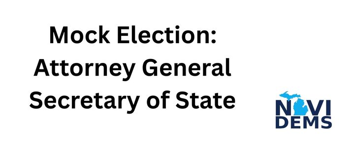 Join us for our monthly membership meeting on Tuesday, March 17 at 6:30 pm – doors open at 6 pm. We will have a mock election for the Democratic nominee to the offices of Michigan Attorney General (Karen McDonald or Eli Savit), and Michigan Secretary of State ( Barb Byrum or Garlin Gilcrist, or Suzanna Shkreli). Let's discuss the candidates and prepare for the actual convention on April 19 in Detroit! Will Novi predict the actual outcome???