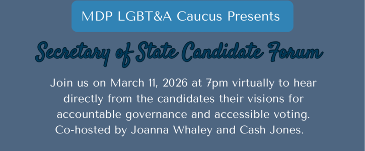 The Michigan Democratic Party LGBT&A Caucus invites you to a Secretary of State Candidate Forum — an opportunity to hear directly from candidates about protecting voting rights, advancing equity, and serving every Michigander.